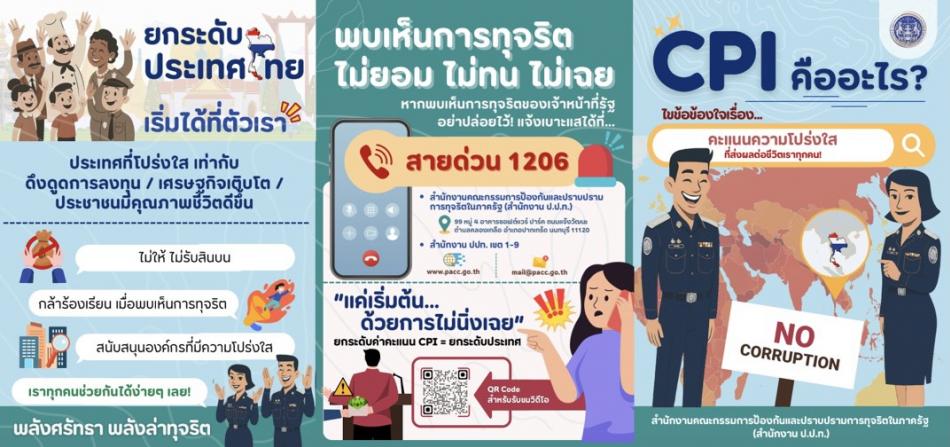 ประชาสัมพันธ์รายงานผลการศึกษาและสื่อประชาสัมพันธ์ในการยกระดับค่าคะแนน CPI (PCI คืออะไร ไขข้องข้องใจเรื่อง... คะแนนโปร่งใสที่ส่งผลต่อชีวิตเราทุกคน พบเห็นการทุจริต ไม่ยอม ไม่ทน ไม่เฉย...