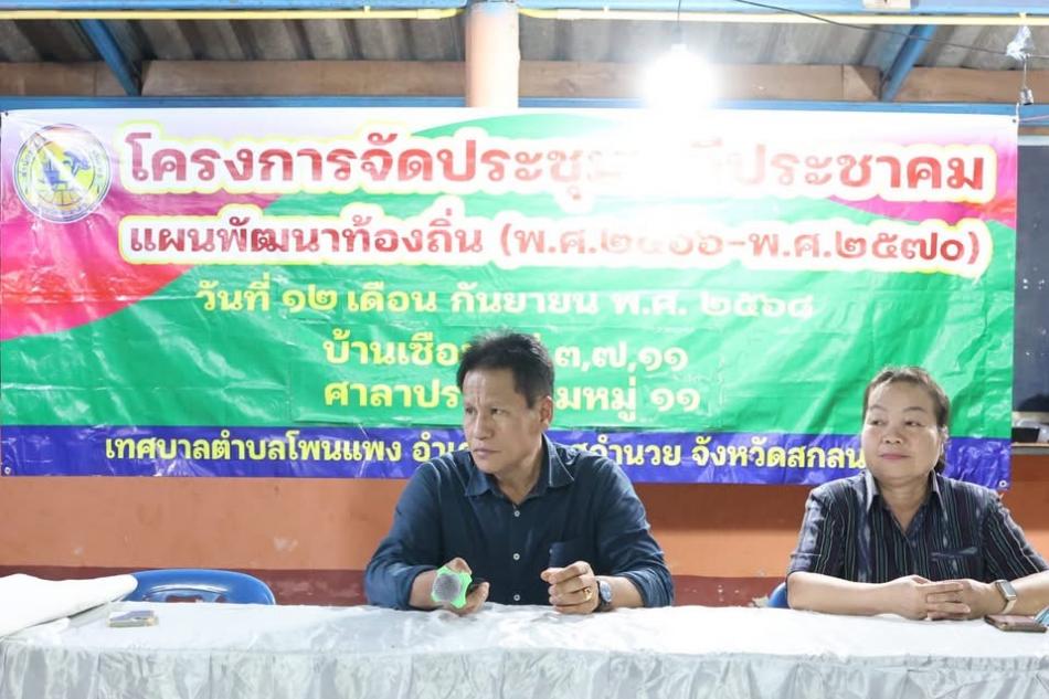 โครงการการจัดประชุมเวที่ประชาคม แผนพัฒนาท้อง ถิ่น (พ.ศ.2566-2570) เวลา 19.00-21.00 น. วันที่ 12 กันยายน 2568 นายเสมอ จำรักษา นายกเทศมนตรีตำบลโพนแพง มอบหมายให้ นายสมเพชร ลาบัวใหญ่ รองนายกเทศมนตรีตำบลโพนแพง พร้อมด้วย...