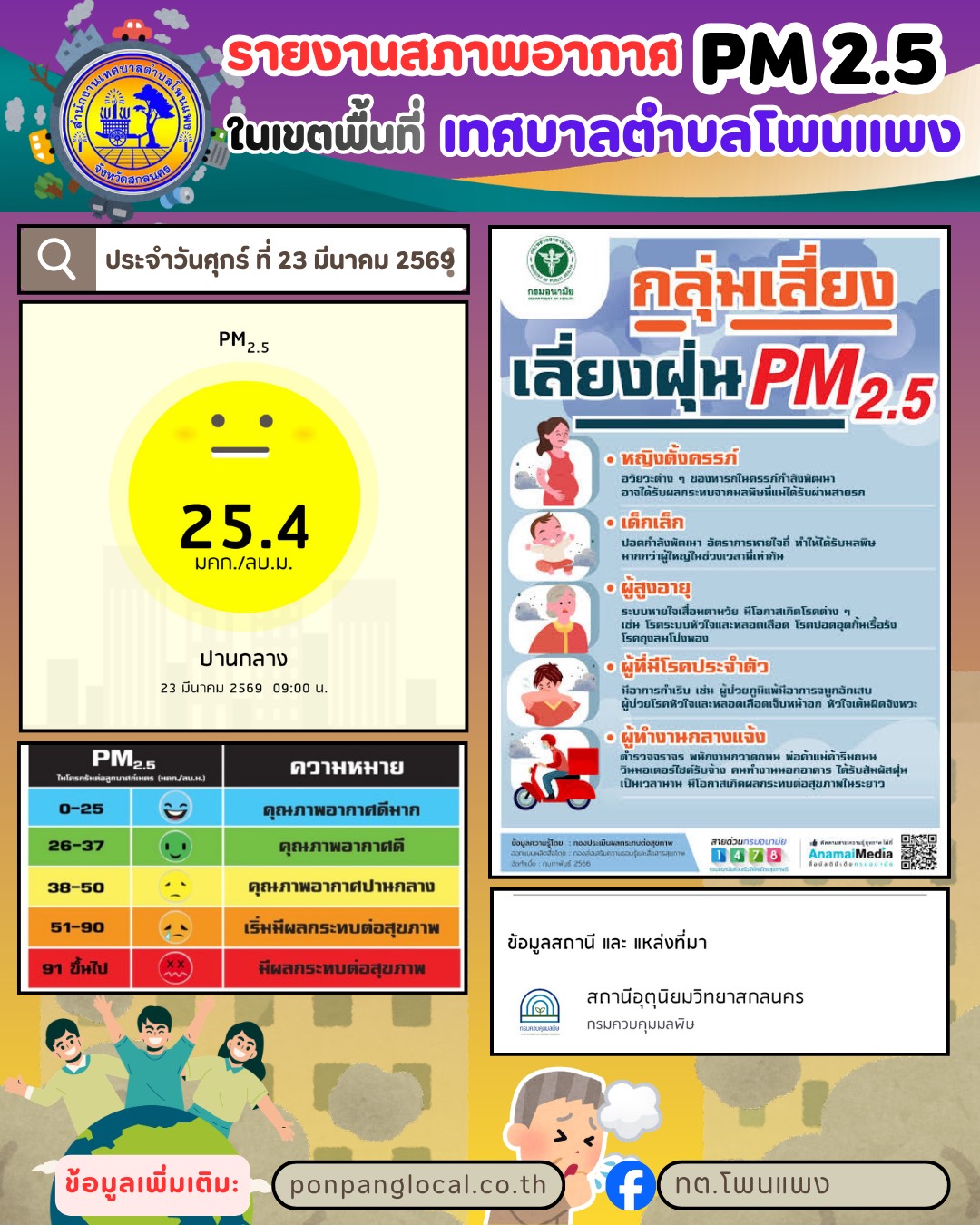 รายงานสภาพอากาศ PM2.5 ในเขตพื้นที่ เทศบาลตำบลโพนแพง