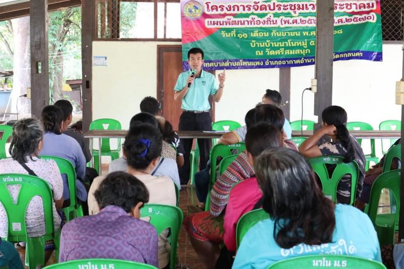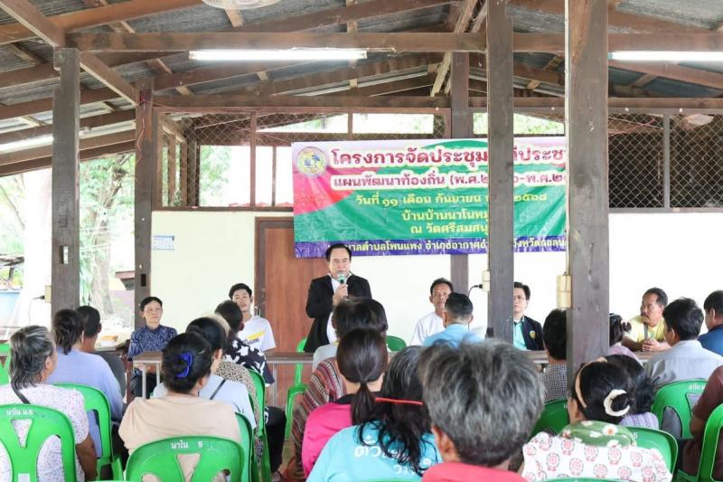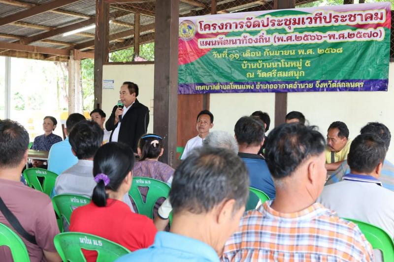 โครงการการจัดประชุมเวทีประชาคม แผนพัฒนาท้อง ถิ่น (พ.ศ.2566-2570) วันที่ 11 กันยายน 2568 นายเสมอ จำรักษา นายกเทศมนตรีตำบลโพนแพง พร้อมด้วยคณะผู้บริหารสมาชิกสภาเทศบาลตำบลโพนแพง รองปลัดเทศบาล รักษาราชการแทนปลัดเทศบาลตำบลโพนแพง หัวหน้าสำนักปลัด นิติกร นักวิเคราะห์นโยบายและแผน นักวิชาการสุขาภิบาล เจ้าหน้าที่ตำบลโพนแพง ผู้นำชุมชน และชุมชน เข้าร่วมรับฟังโครงการจัดประชุม เวทีประชาคม แผนพัฒนาท้องถิ่น (พ.ศ.2566-2570) ณ บ้านนาโน หมู่ 5 วัดศรีสมสนุก